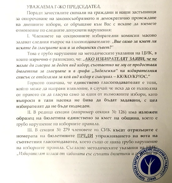 Той допълни, че този и още няколко случая на нарушения на изборния процес вече са подадени като сигнали в ОИК и призова всички участници в изборния процес да не опорочават и да не застрашават демократичното провеждане на днешните избори.