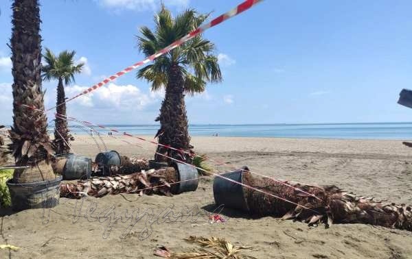Шокираща гледка на натъркаляни 5-6-метрови палми в бурета се разкри пред посетителите на Северния плаж в Бургас.
