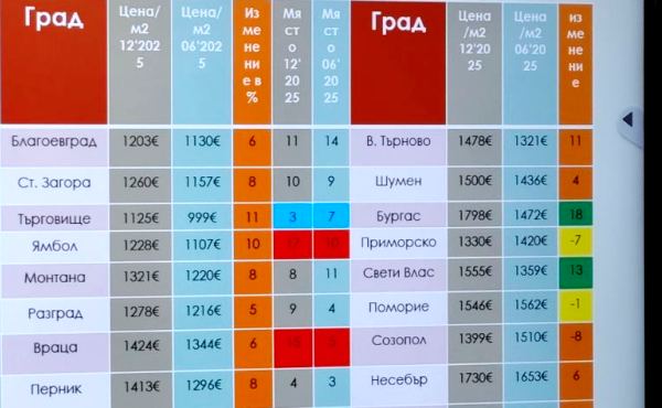 Ръст има и в Несебър - с 6 %. Цената достига до 1730 евро/кв.м. през декември 2025 спрямо 1653 евро през юни. Засилен интерес към покупка на жилище има и от страна на украински граждани, отчитат брокерите.