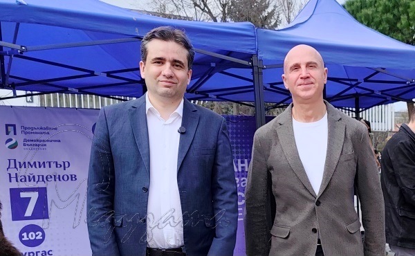 „Дойдох в Бургас, за да подкрепя листата тук и Димитър Найденов, когото всички познавате. Той всеки ден може да бъде видян тук, без значение в дъжд или сняг. В Парламента искаме да работим с такива хора, които ежедневно работят за хората“, сподели Божанов пред представителите на медиите.
