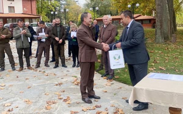 Директорът на Югоизточното държавно предприятие – гр. Сливен, инж. Димчо Радев, връчи плакет на директора на Държавно горско стопанство – Айтос Георги Николов.