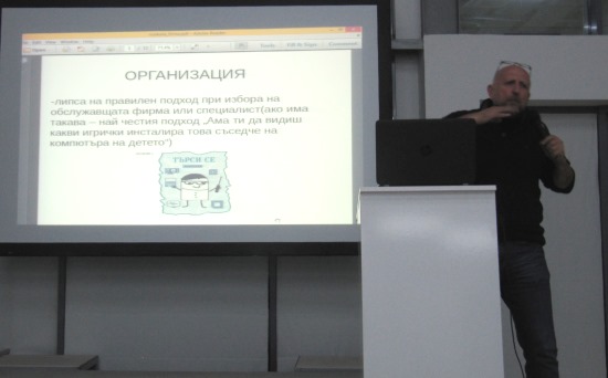 „Мога да ви изпратя имейл от когото искате“, заяви пък вторият лектор Валентин Русалийски, който представи лекция за криптоатаките /Ransomware/. Той разясни начините, по които се атакува компютъра. „Ransomware не е вирус и винаги е съврзан с действие на потребителя. Използват се главно пощите, чрез фишинг. Например получавате съобщение „няма да ви платим тази фактура“ и прикачен файл към писмото. В никакъв случай не отваряйте файла“, съветва експертът.