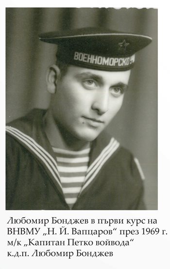 Любомир Бонджев прави първия си рейс като капитан далечно плаване през 1982 г. с моторен кораб Ботевград. Той е едва 31-годишен, когато придобива правоспособност к.д.п.