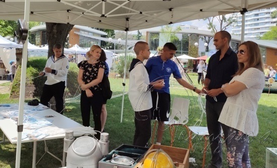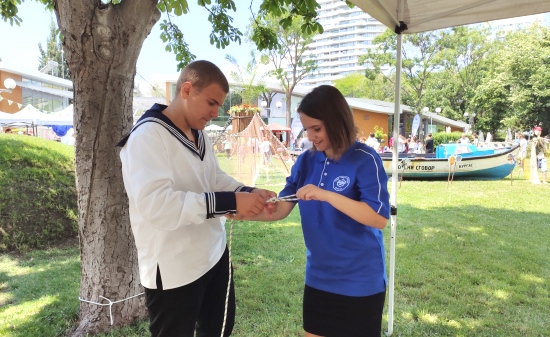 Демонстрация на вързването на морски възли правят ученици, заедно с техния преподавател Крум Томов. Всеки, който желае, може да се научи в шатрата на училището, вдясно пред експоцентър Флора.