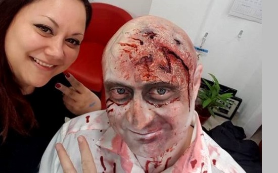 Виртуозът по грим и бодиарт в Бургас – Теодора Калчева днес развихри своето въображение и приложи своя майсторлък за Хелоуин.