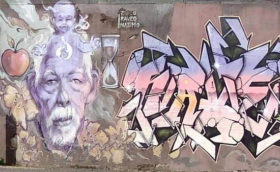 На същата стена и изобразен азиатец като минало и бъдеще - дете и старец с пясъчен часовник.