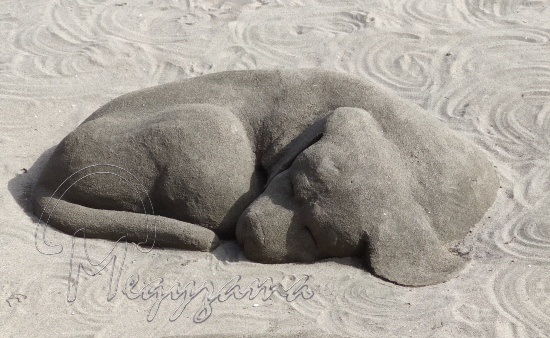 След пясъчните котки, русалка, водно конче и слон, се появиха и спящи кученца на Северния плаж на морския град. Скуптурите на навитите на кълбета домашни любимци приковават погледа на хората, които си правят селфита и снимки с тях.