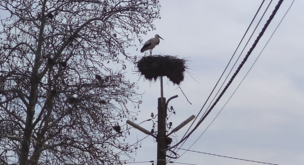 Първата двойка щъркели вече пристигнаха в село Полски извор, община Камено. Прелетните птици обитават гнездо точно в центъра на площада.