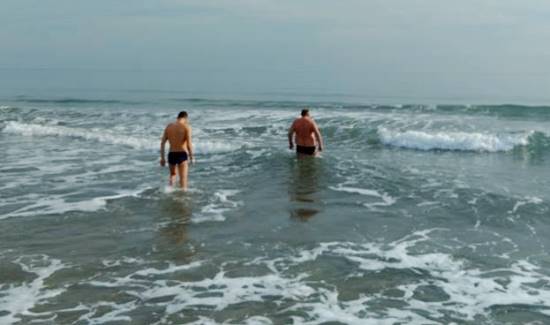 След новината за замръзналото море на Бургас, двама смелчаци се окъпаха на централния плаж на града.
