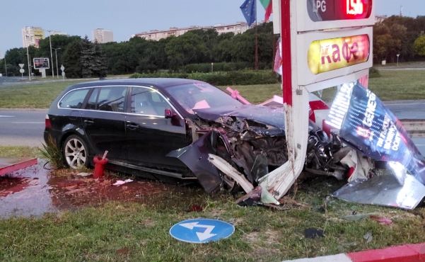 като последователно блъска хидрант и рекламно пано на бензиностанция “Лукойл”.