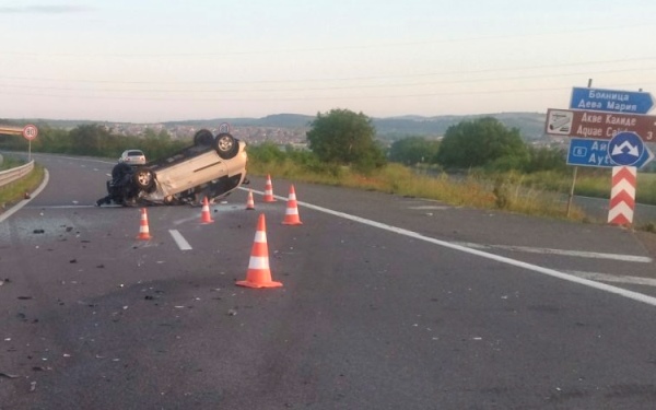 От ПТП лекият автомобила се обърнал по таван, а микробусът е със скъсан заден мост. Пътният инцидент наложил затварянето и на двете ленти за движение.