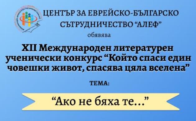 Център „Алеф” удължава срока за получаване на творби в дванадесетото издание на Международния литературен ученически конкурс „Който спаси един човешки живот, спасява цяла вселена” до 1 април 2025 година. До промяната се стигна поради големия интерес и многобройните запитвания от страна на учители и ученици в страната и чужбина.