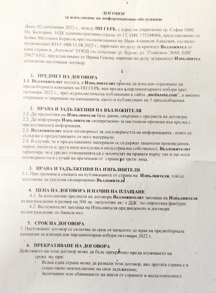 Договор кампания за Парламентарни избори 2022 TwitterАнтемон ЕООД, собственик на информационен сайт meduzata.com подписа следния Договор за кампания за Парламентарни избори 2022: ***** ОБЯВИ 05 Септември 2022 Предишна Следваща