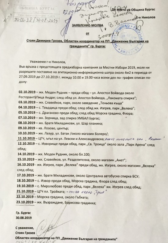 Призовавам администрацията на ГЕРБ в Община Бургас да спре с изборните си репресии върху своите политически опоненти.