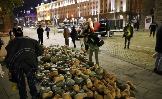 Около 19 часа на обичайното си място бяха стоварени един камион тикви в "Триъгълника на властта" пред Министерски съвет и бившия Партиен дом.
