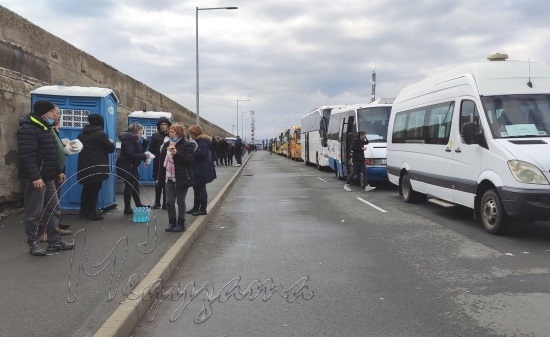 Това видя екип на meduzata.com днес в 11 ч. Автобусите са около 40 на брой, а хората в тях бедстват без храна.