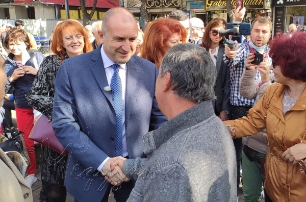 Те преминаха по ул. Александровска, където президентът бе спиран от хората, за да се ръкуват и дори прегърнат с него.