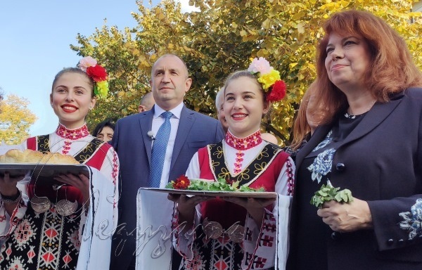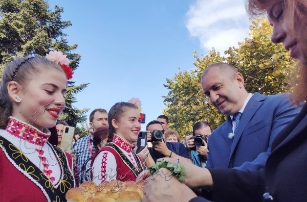 Радев и Йотова бяха посрещнати с хляб и сол по стар български обичай.