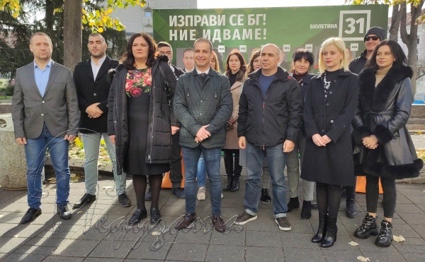 Водачът на бургаската листа Живко Табаков и част от кандидатите на формацията отправят своите последни послания към хората преди вота от предизборния павалион на ул. Богориди.