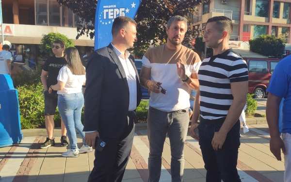Пред десетки жители и гости на черноморския град кметът Иван Гайков приветства кандидатите за народни представители от коалицията, както и кандидата за евродепутат Борислав Киров, който е жител на Приморско и част от Общинския съвет там.