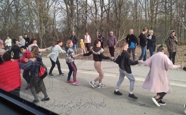 Хиляди хора излязоха навън покрай превозните средства, а една компания изкара тонколона, пусна народна музика и изви хоро. Еленино, право, дайчиво следваха едно след друго, а на хорото се хващаха все повече ентусиасти.