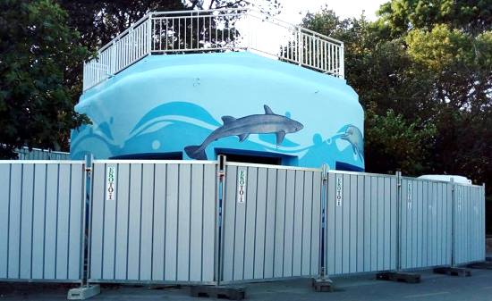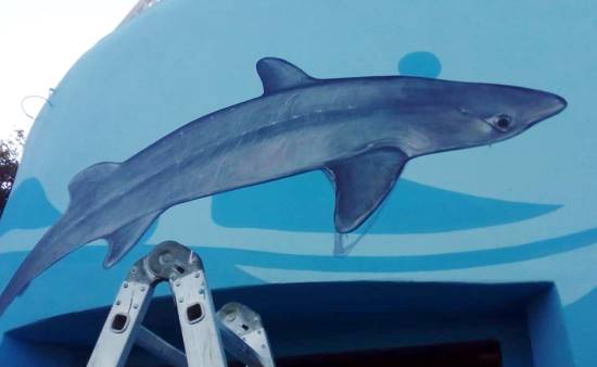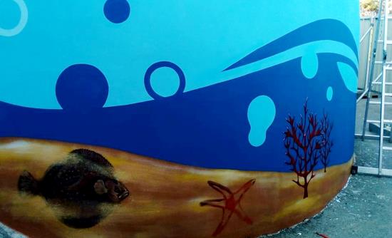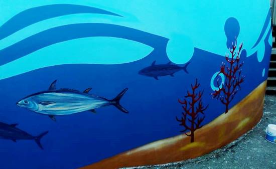 Морско дъно с акула, делфин, калкан, паламуди и други характерни обитатели представлява вече фасадата на военното съоръжение. Картината ще е окончателно завършева до сряда, разбрахме от кухнята.