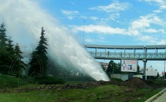 Огромен гейзер изригна на бул.“Стефан Стамболов“ в Бургас, до хотел „Мираж“, видя meduzata.com.