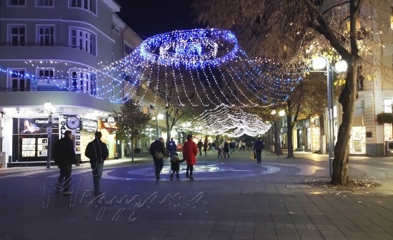 От Компаса до площад Тройката гирляндите с лампички са разположени в дъги като шпалир.