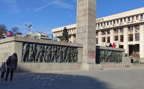 Паметникът на съветската армия в Бургас осъмна с надпис «Путин убиец».
