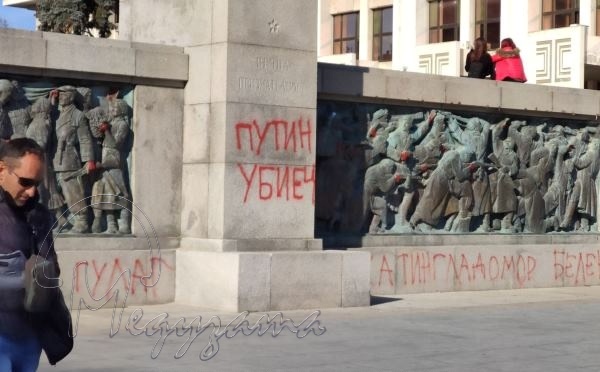 Вчера Паметникът на съветската армия в София също осъмна обрисуван – с цветовете на украинското знаме, заради което снощи там бяха пратени дежурни патрули.