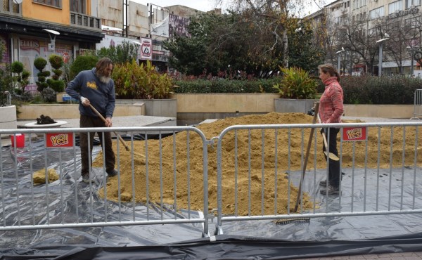 Този път двамата творци ще изработят новото си произведение не на бургаския плаж, а на площад „Атанас Сиреков“ пред сградата на Община Бургас.