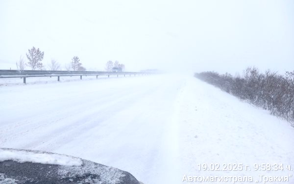 Временно движението по автомагистрала „Тракия“ в участъка Карнобат – Бургас е ограничена за движение на всички МПС поради снегопочистване.