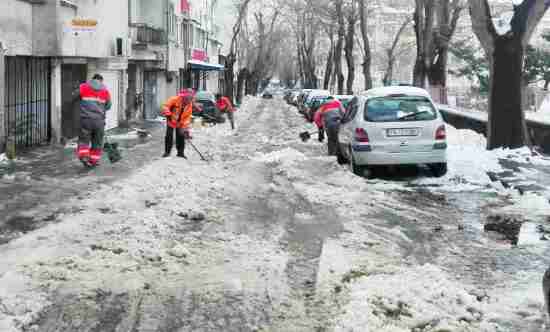 Започна почистването на подходите към училищата, събирането и извозването на натрупаните количества сняг до тротоарите на улиците около тях.