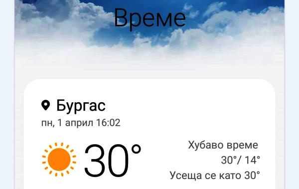 Не е първоаприлска шега това, че днес термометърът показа 30 градуса на сянка в Бургас.