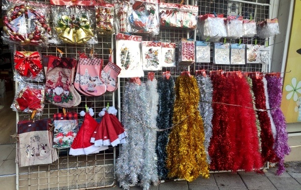 Въпреки че навън е 27 градуса и хората са на плажа, търговците в Бургас вече изкараха коледната украса, видя meduzata.com.