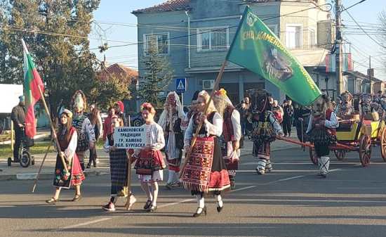 Атрактивните кукери от сдружение „Каменовски традиции” прогониха злите сили в Камено.