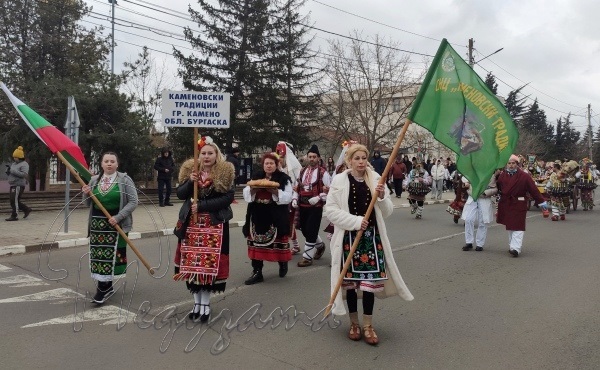 Многолюдното им шествие стигна до площада, където по традиция се изпълниха обичаите, които да прогонят злите сили и да донесат здраве и берекет.