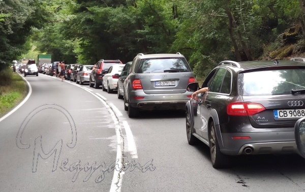 Колоните от автомобили и в двете посоки са километрични. За преминаване се изчаква около час