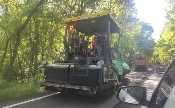 На шосето е струпана тежка техника и се работи непрекъснато по едното платно, а движението се осъществява по другото. И в двете посоки са се образували тапи.