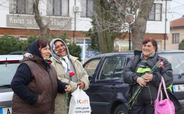 Те изнесоха кратка програма и подариха цвете на всяка от тях.