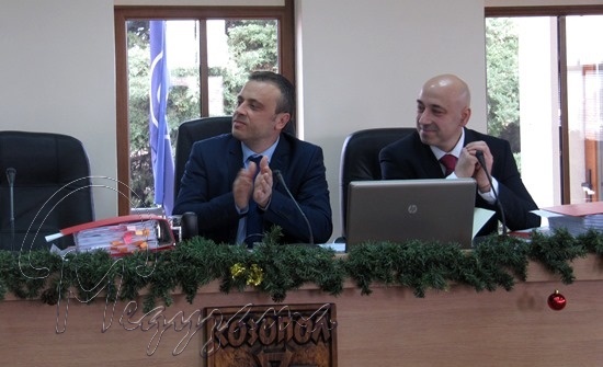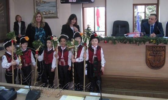 Малки коледарчета поздравиха общинските съветници от Созопол преди тяхното редовно и последно заседание за тази година, което ще започне след минути.