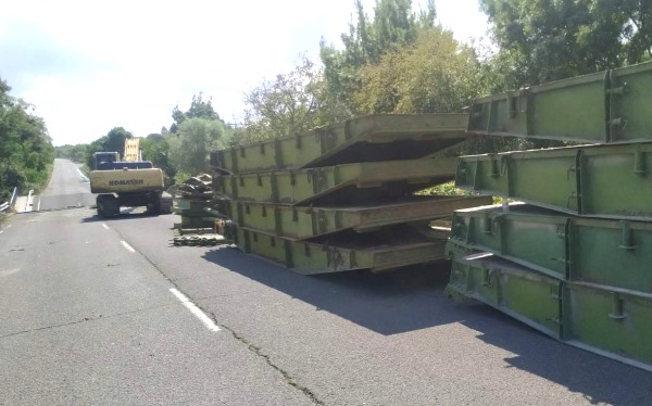 Предвид големият габарит и тегло безопасното движение на транспортната техниката се извършва по-бавно. Работата на терен се изпълнява от специализирана техника с 41-тонен багер и 100-тонен кран, с които трябва да се демонтира компрометираният мост.