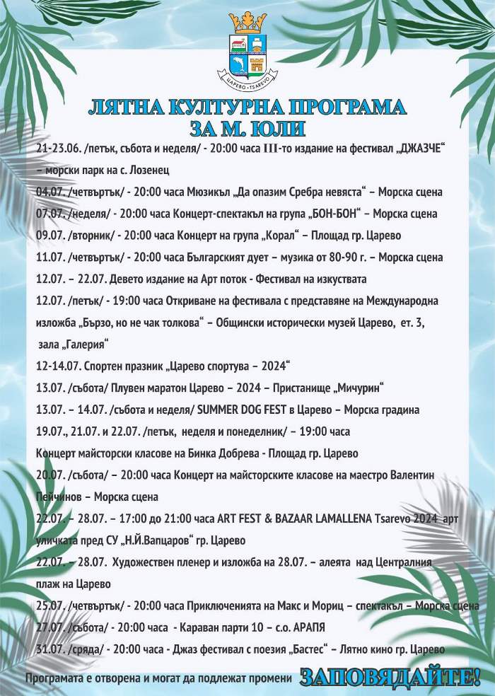 Това лято Царево отново се превръща в оживен културен център, преливащ от множество събития, които ще очароват както жителите, така и гостите на града.