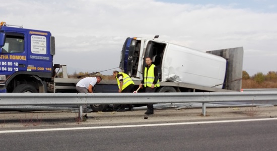 Микробус е катастрофирал на км 205-206 от автомагистрала Тракия днес, видя екип на burgasdream.com.