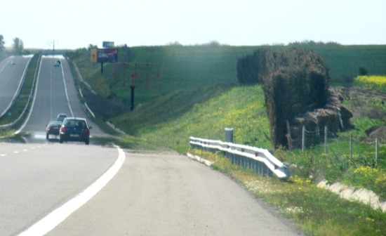 Зеленият ветрозащитен пояс от кипариси по магистрала Тракия е вече предимно кафяв. В това се увери екип на meduzata.com днес, 29 април.