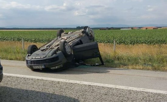 Към 18:10 ч движението все още е затруднено заради автомобил със софийска регистрация, обърнат по таван на аварийната лента.