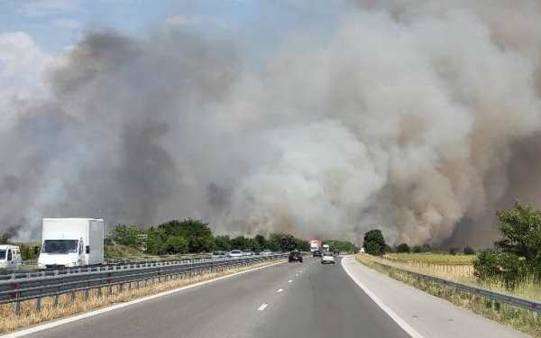 Затвориха участък от автомагистрала "Тракия", научи "Фокус". Причината - огън около част от аутобана.